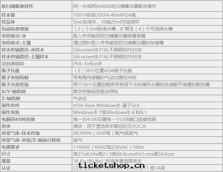 根(gēn)據(jù)U.S EPA方(fāng)法(fǎ),OI 4100水(shuǐ)/土(tǔ)壤樣(yàng)本(běn)處(chù)理(lǐ)器使得在(zài)40ml VOA瓶(píng)子中(zhōng)進(jìn)行的揮發(fà)性(xìng)有(yǒu)機(jī)物(wù)吹扫捕集分(fēn)析自(zì)動(dòng)進(jìn)行處(chù)理(lǐ)。 4100可(kě)有(yǒu)效處(chù)理(lǐ)100个飲用(yòng)水(shuǐ),廢水(shuǐ),或(huò)土(tǔ)壤樣(yàng)本(běn),並(bìng)同(tóng)一(yī)台(tái)或(huò)两(liǎng)台(tái)4660吹扫捕集儀器一(yī)同(tóng)操作(zuò)。 特(tè)性(xìng)